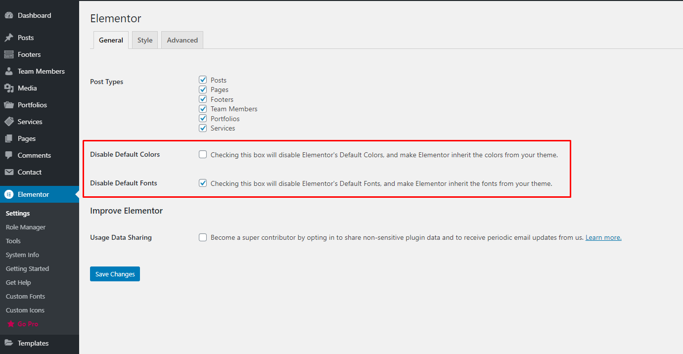 How to disable Elementor default color and fonts?