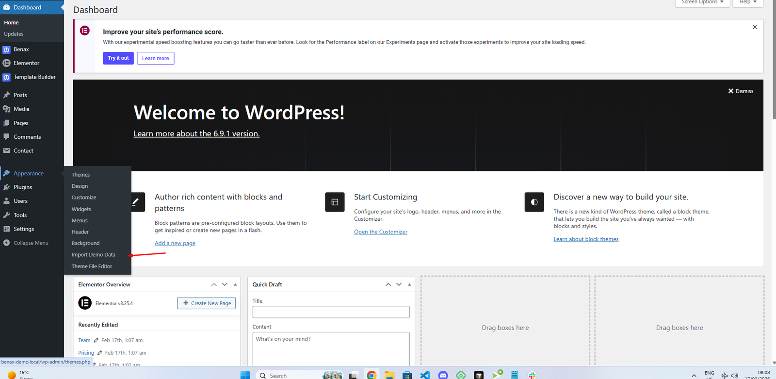 Our demo data import lets you have the whole data package in minutes, delivering all kinds of essential things quickly and simply. All you need to do is to navigate to Appearance > Import Demo Data.
