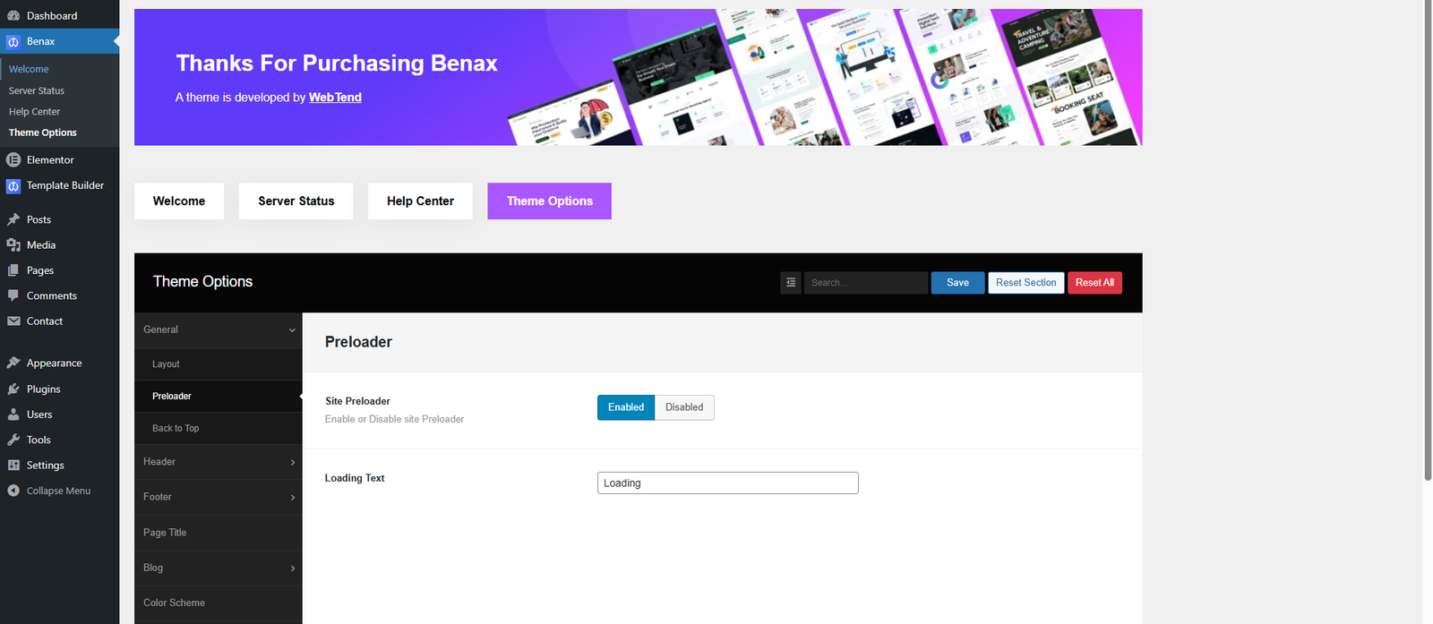 Enable Preloader : From this section, you can enable or disable pre-loader option on our website. If you do not want to show any Preloader on your website, just off the setting from here.