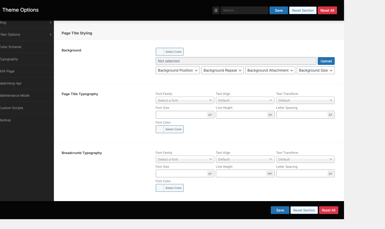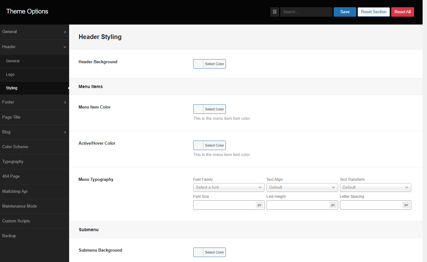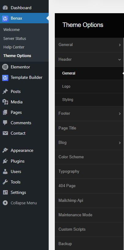 From the Theme options, you will have more customization options for the following elements in your website.