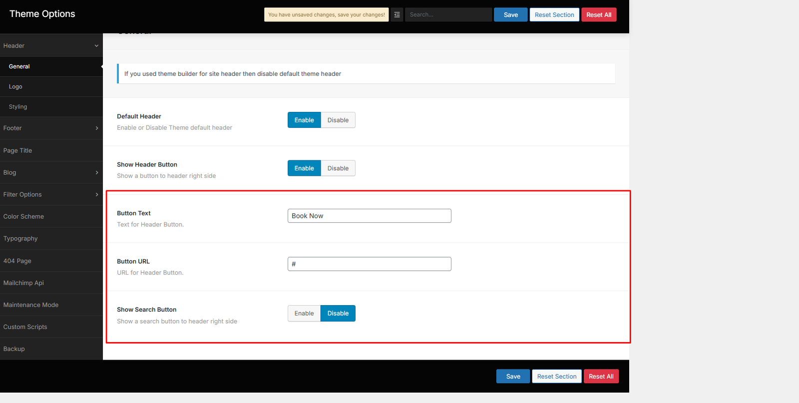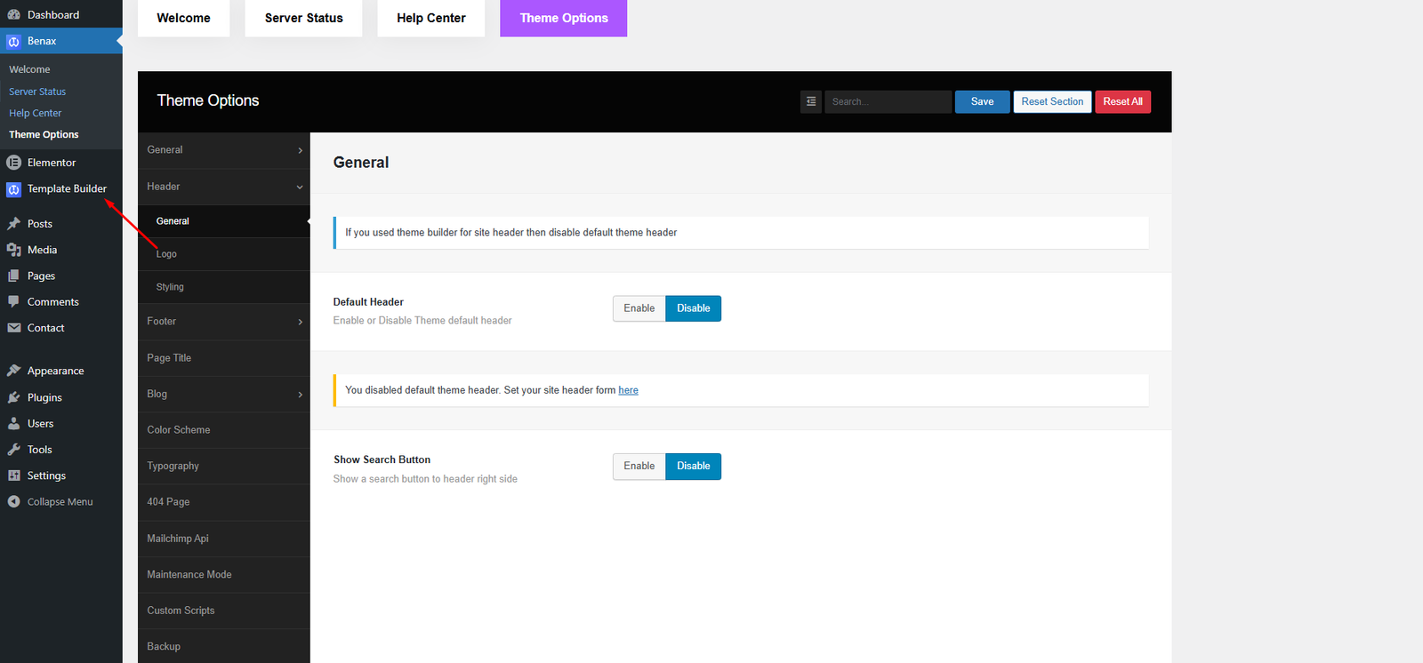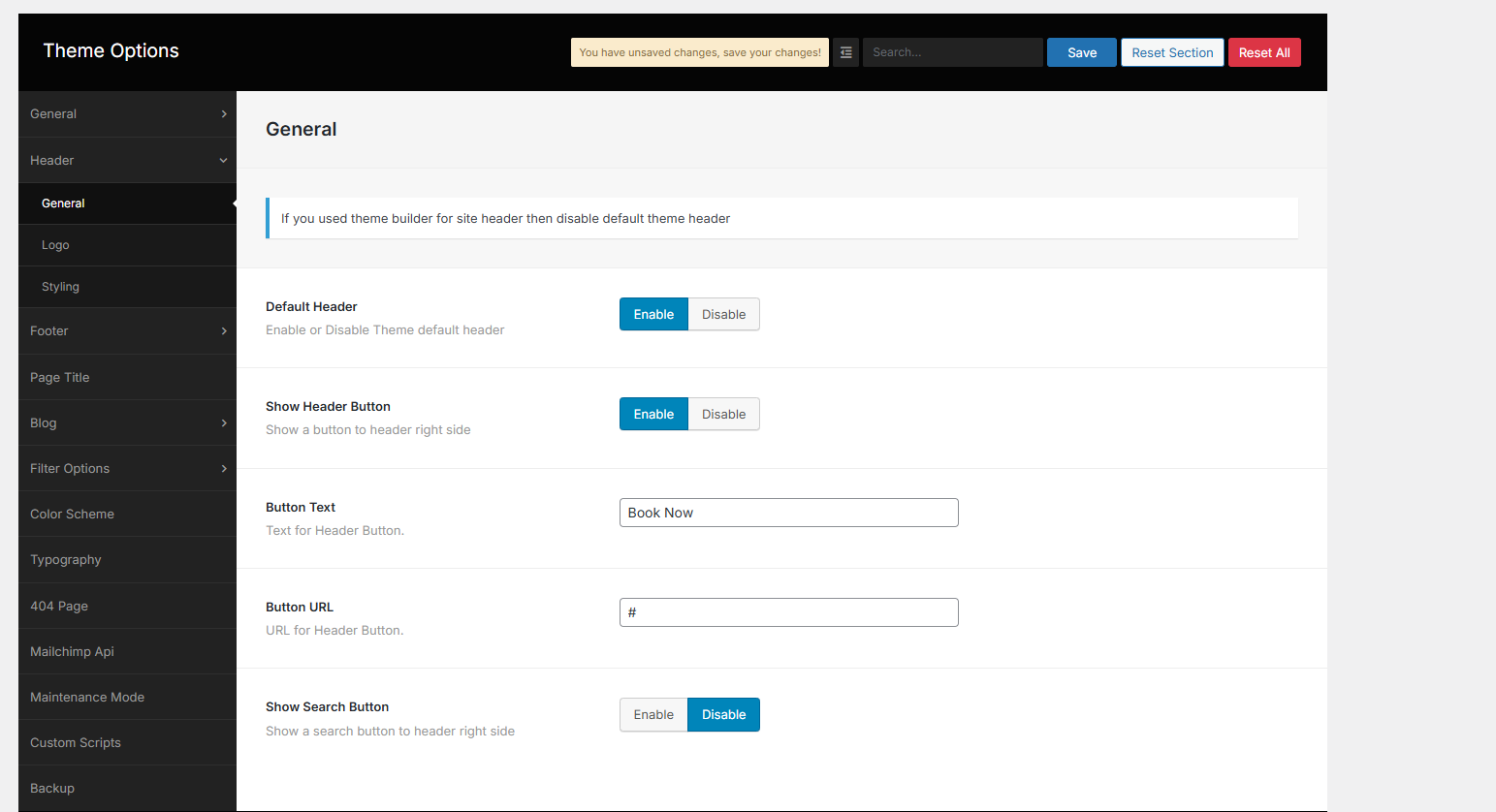 From the Theme options, you will have more customization options for the following elements in your website.
