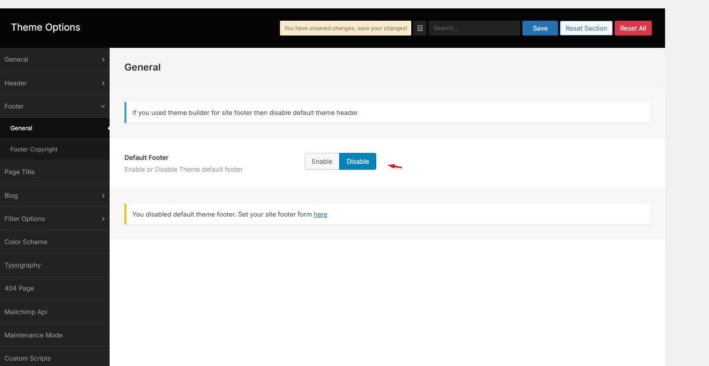 Here you can select footer layout. You can use default footer or use footer from Template Builder