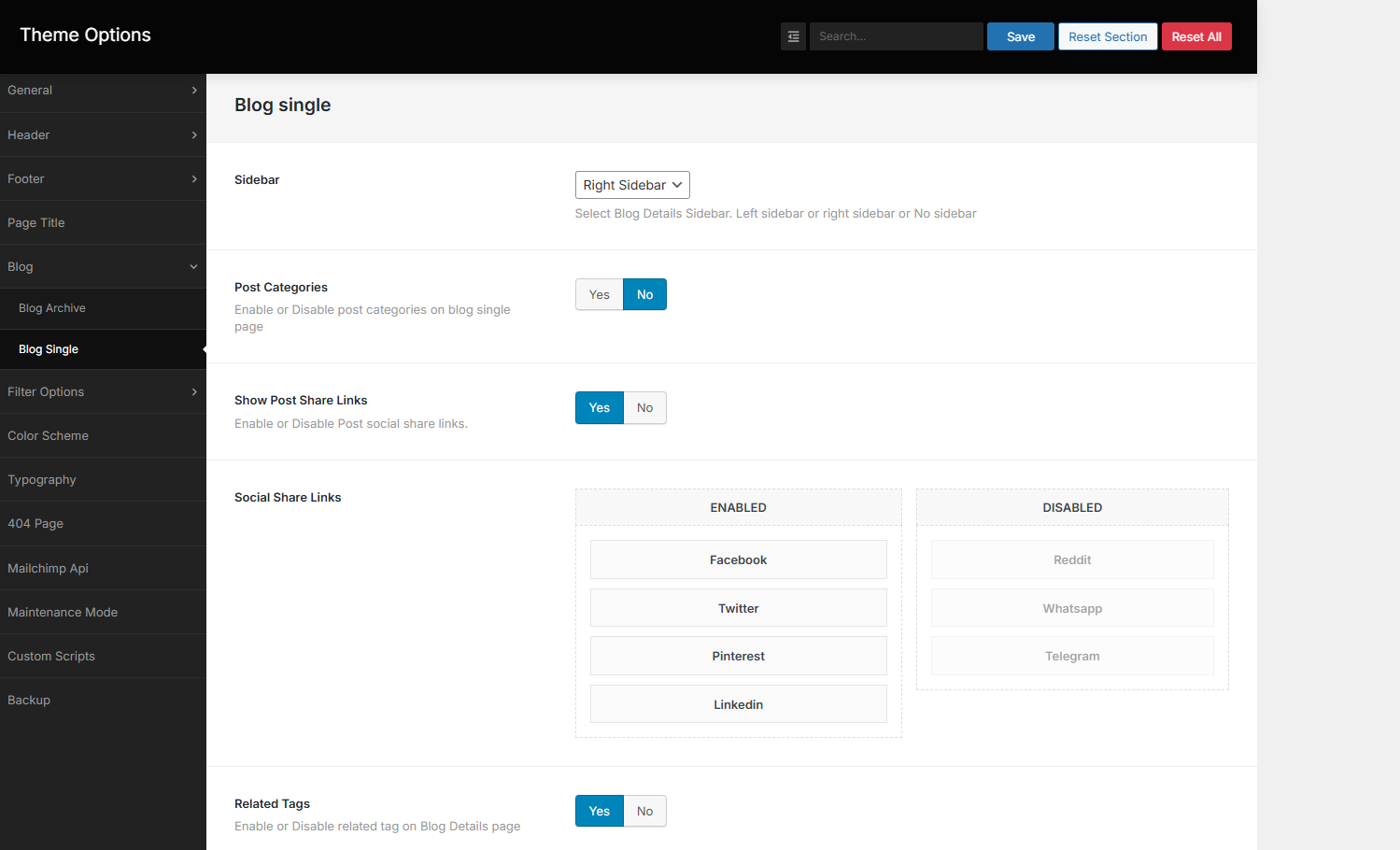 Here you can change Social Share, Post Tag, Post Meta, Categories, Post Author Names, Comment Count Text, Post Date and Related Posts option of the blog. We recommend to show the social share, post tag categories on because it is helpful for the readability of the blog. .
