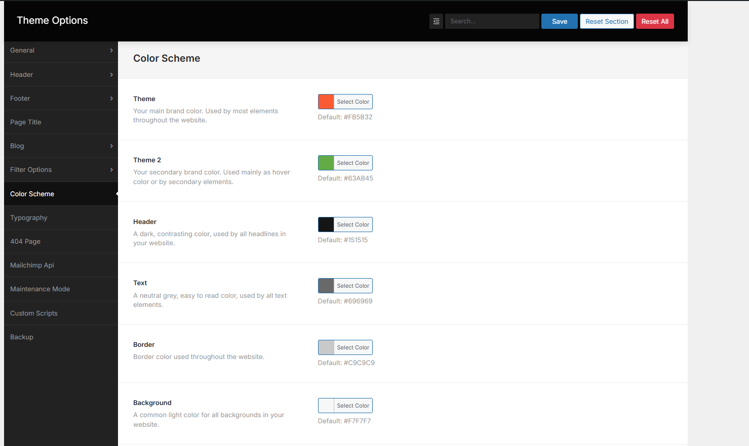 This section you can customize theme color scheme