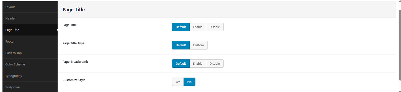 Page Heading: Enable or disable page heading here. You can also add custom title for page heading