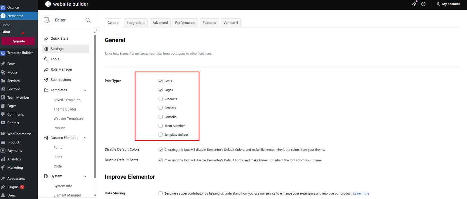 Step 1 — Navigate to your website’s WordPress Dashboard > Elementor > Settings