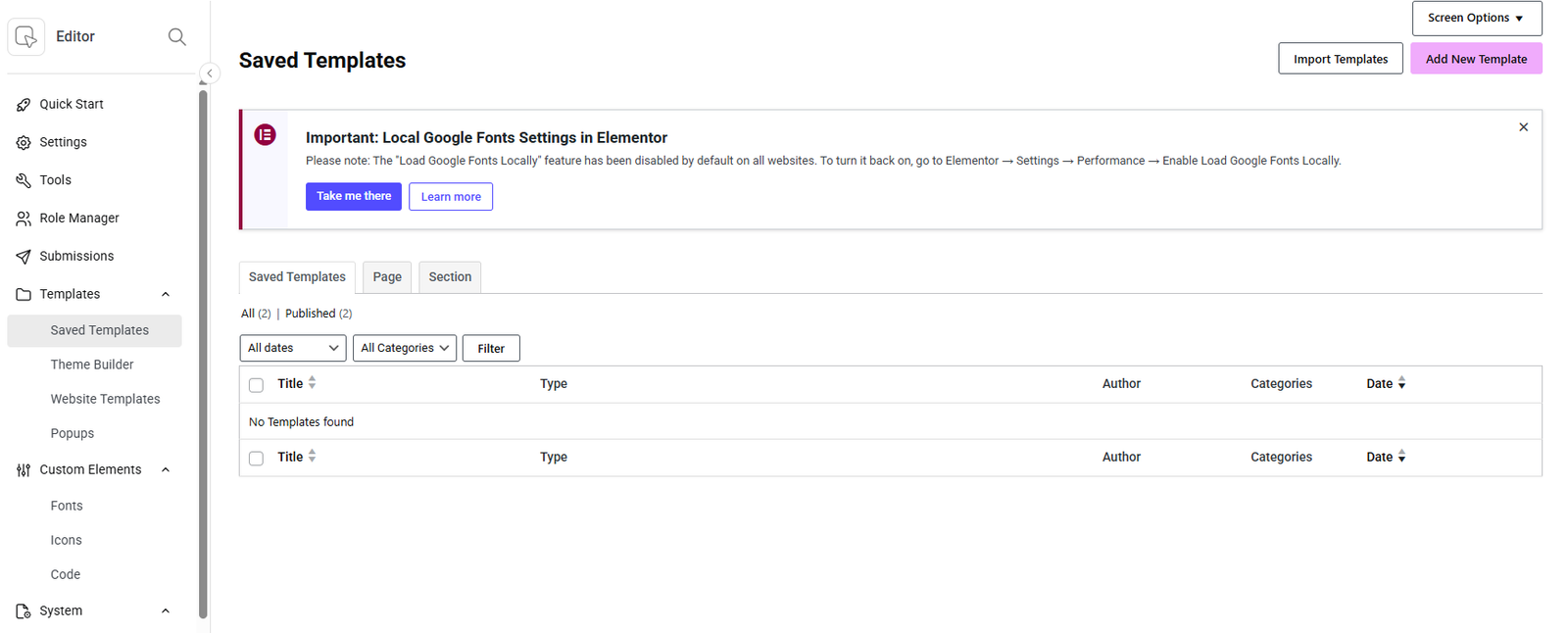 How to import Elementor Template