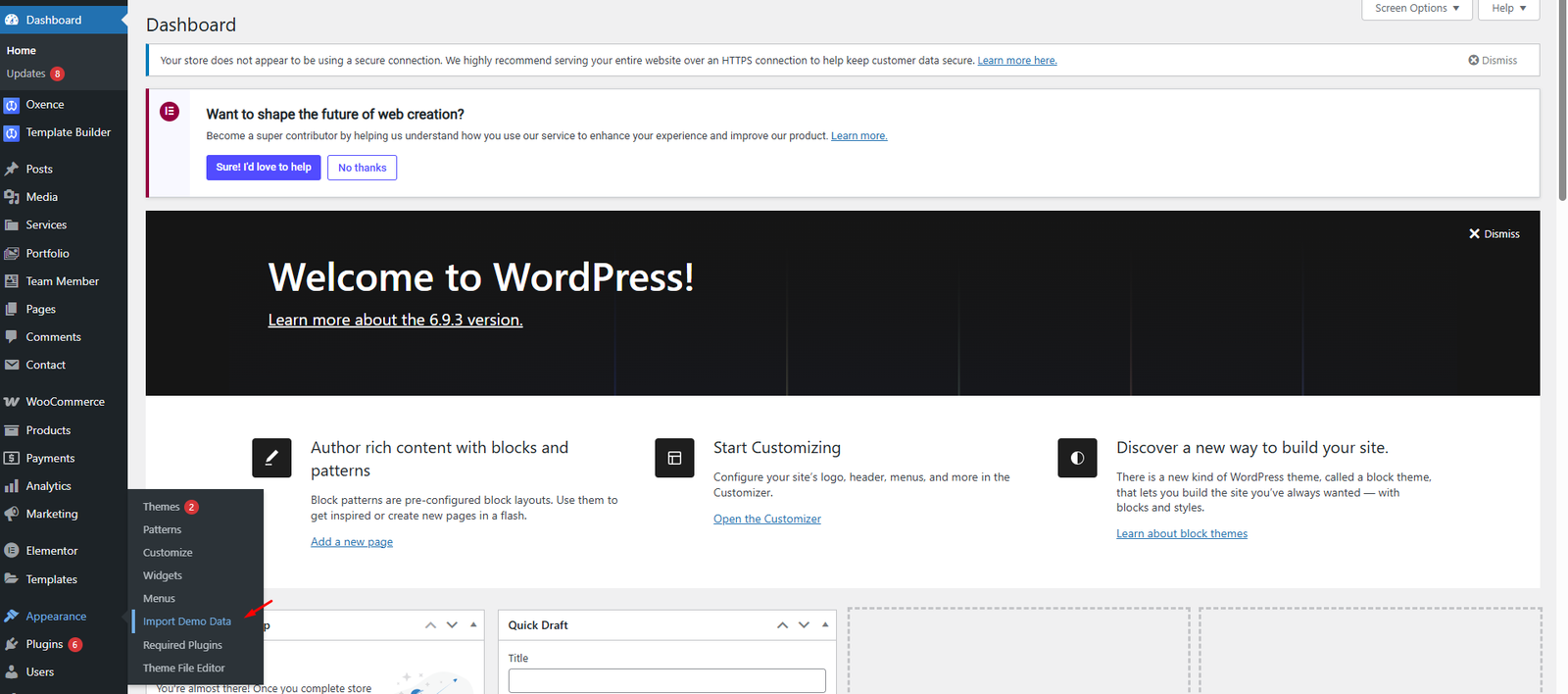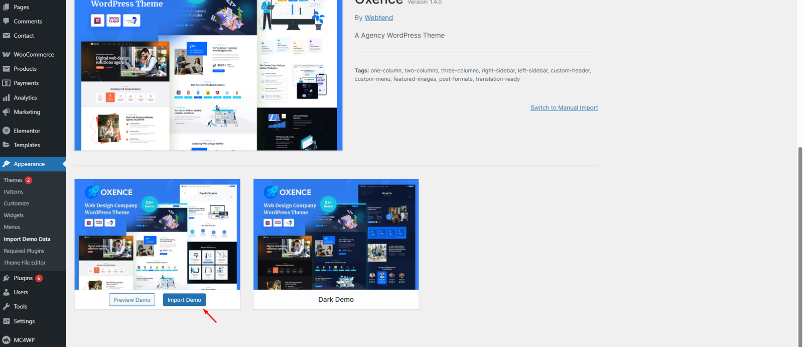 Our demo data import lets you have the whole data package in minutes, delivering all kinds of essential things quickly and simply. All you need to do is to navigate to Appearance > Import Demo Data.