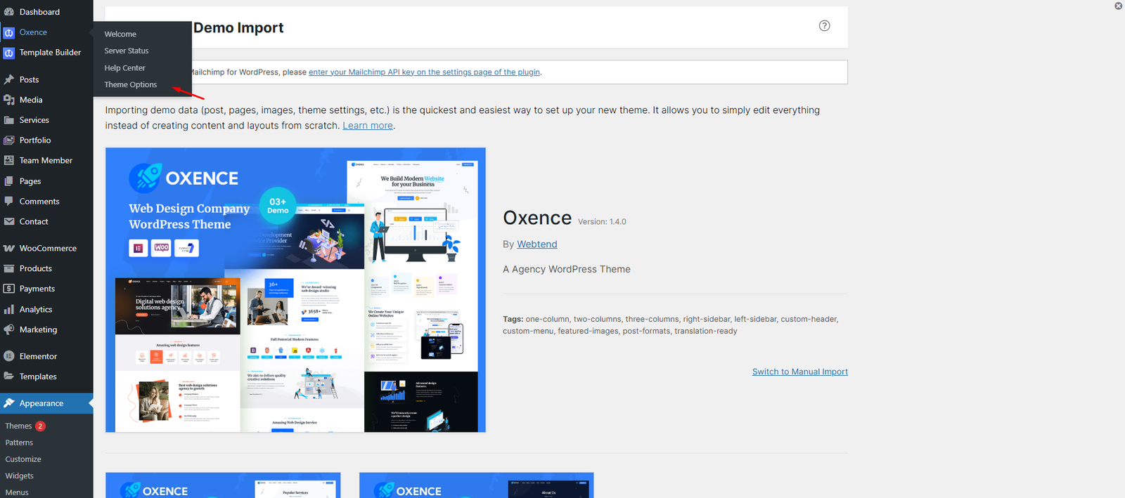 - Navigate to Appearance > Themes Activate another theme to deactivate the Oxence theme